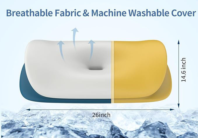 - [Stay Comfortable with Breathable Fabric]: Tired of waking up sweaty and uncomfortable? Our pillow for sleeping features a breathable fabric that keeps you fresh and dry all night. Additionally, our cervical pillow offers flexibility with two different heights to choose from: one side is 4.52 inches, and the other side is 4.13 inches, allowing you to customize your sleeping experience for maximum comfort and support.